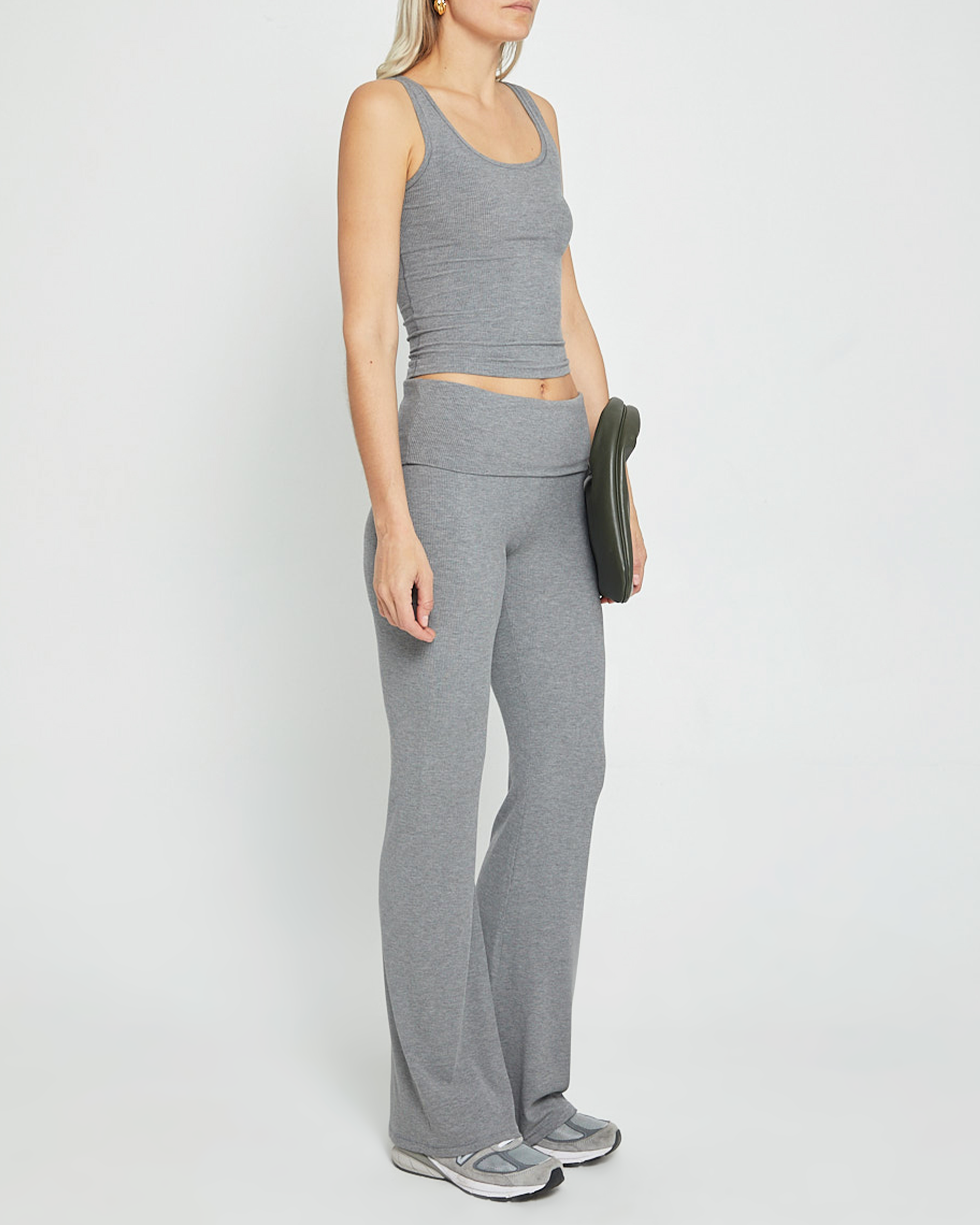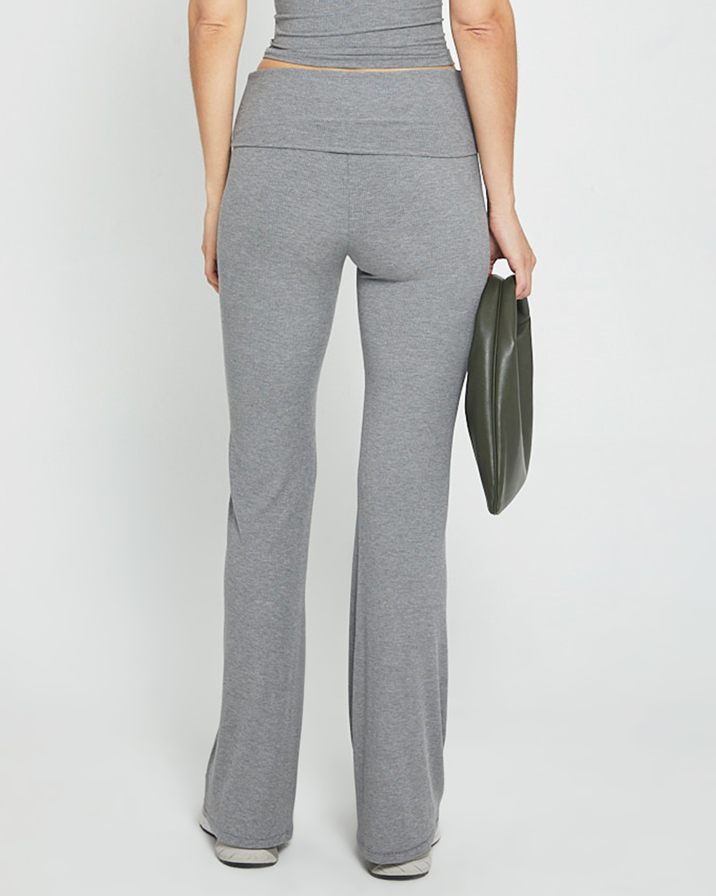 Stay comfortable in style with the Soft Lounge Foldover Pant. Crafted from super soft and stretchy ribbed knit. these pants feature a flattering fold over and a subtle flared leg.